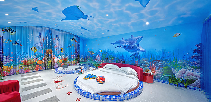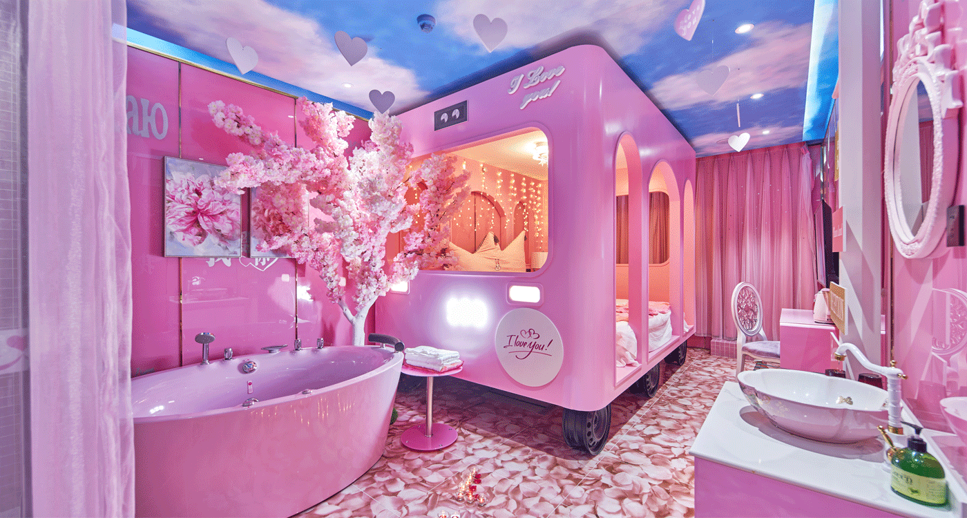 集浪漫主題房、童趣親子房和精品商務房一體,部分房間更有露臺花園!