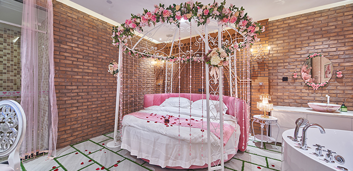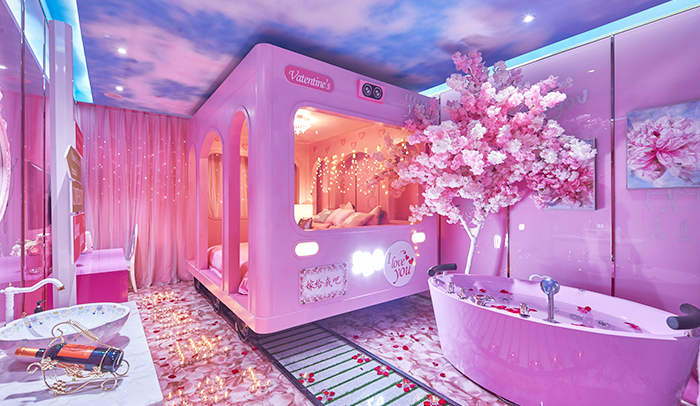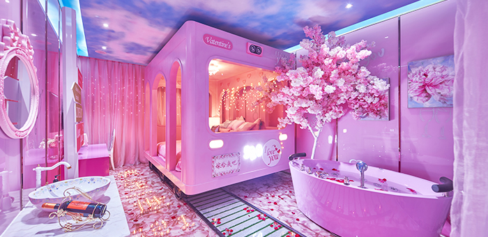36間心動主題房,演繹浪漫情懷,智能音影,按摩浴缸護航溫馨之夜。