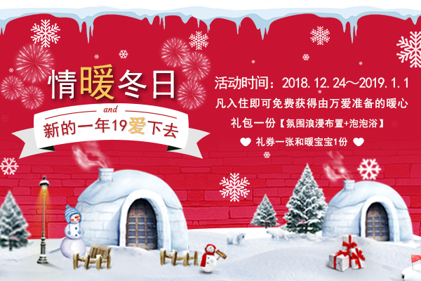 你來萬愛躲避嚴寒,萬愛給你們送溫暖。凡2018.12.24~2019.1.1來萬愛入住的小情侶們均可獲得萬愛獨家提供的冬日浪漫禮券【氛圍浪漫布置&泡泡浴】以及暖寶寶一貼。