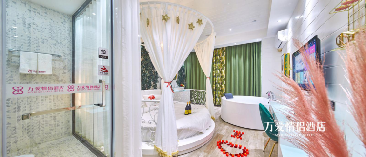 與市場上大多數(shù)情侶酒店不同,萬愛情侶酒店房間內(nèi)沒有電動(dòng)椅等情趣設(shè)施,甚至主題房裝修風(fēng)格溫馨明亮,整體烘托出一種浪漫氛圍,在一眾以“情趣”元素為主打的情侶酒店中顯得尤為獨(dú)特。萬愛堅(jiān)持原創(chuàng)設(shè)計(jì),特聘請香港設(shè)計(jì)師主創(chuàng)和國內(nèi)軟裝團(tuán)隊(duì)重金打造風(fēng)格各異的主題房,每個(gè)門店無論擁有多少間主題房,都無一重復(fù),星空、海洋、櫻花等多種浪漫元素構(gòu)建出一間間夢幻愛舍,在這里顧客可以任意選擇自己喜歡的風(fēng)格。