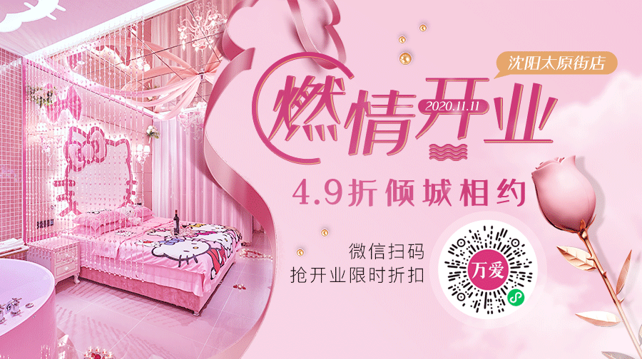璀璨盛京 沈水之陽。萬愛情侶酒店·沈陽首店,雙十一傾城綻放。新店坐落在繁華的太原街,具體地址是沈陽和平區(qū)中山路65-1號3層。萬愛IN盛京,開啟全城熱戀,傾城戀曲即將奏響。
