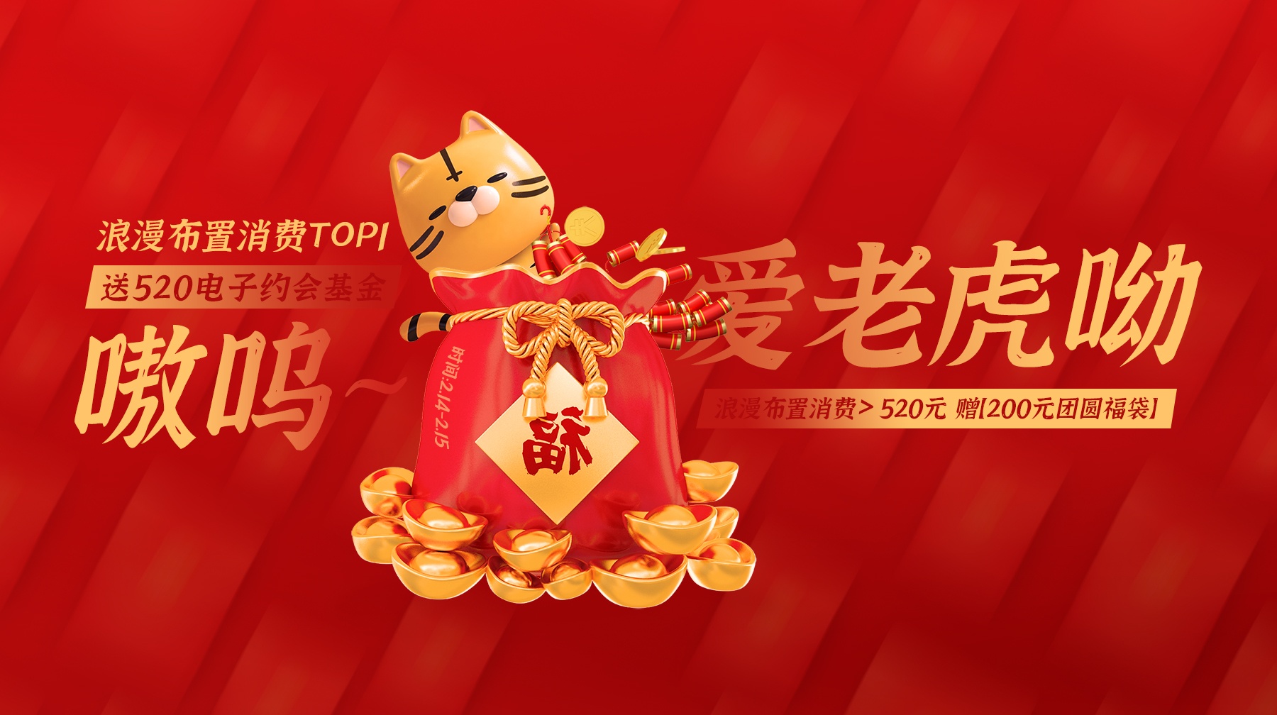 虎年正月里頭的情人節(jié),愛情的小火苗,嗷嗚嗷嗚燃燒!萬愛『賀歲情人趴』熱力待啟,多重福利活動為你守候。